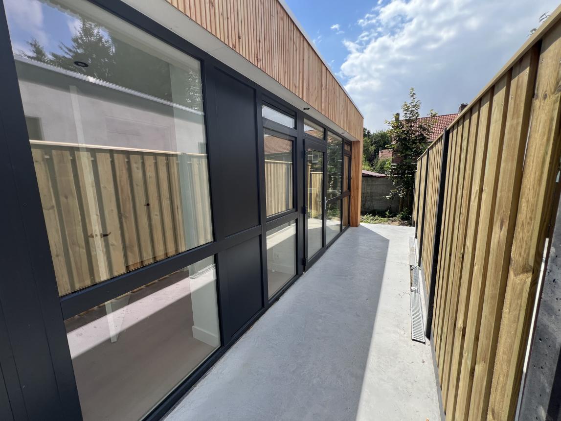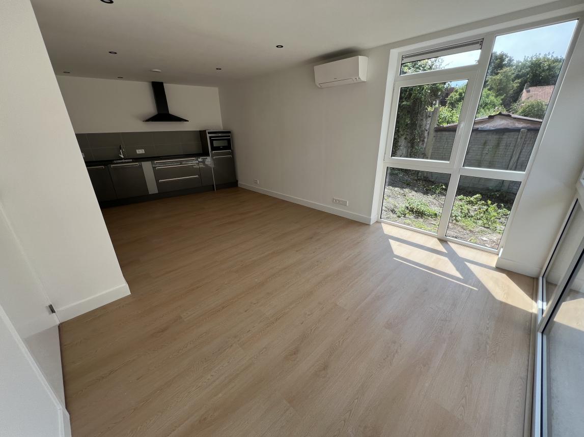 Mooi nieuw 'full-electric' appartement op de begane grond met een vrije achterom. Via de hal kom je in de ruime woonkamer met keuken (28 m2) met aangrenzend een tuin van 40 m2. Tevens heeft de woning een badkamer met douche, apart toilet, ruime slaapkamer (13 m2) en een extra kamer (5 m2). Tevens de mogelijkheid om de auto te parkeren op eigen terrein achter een poort.
